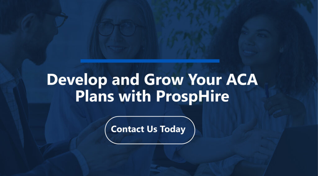 Having an ACA-compliant plan in your portfolio is crucial and developing the best plan for your business is undoubtedly a top priority. At ProspHire, you have a professional and reliable consulting firm supporting healthcare organizations as you develop and expand your portfolio. Our professional team works alongside you to tailor your ACA plans to your organization while offering expert advice and meaningful strategies to execute successful plans. We also assist you with marketplace accreditation, vendor implementation and business growth. Contact us today to achieve your ACA plan goals and learn more about our ACA plan development and expansion services.