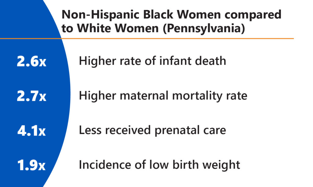 Consider the data above where we see low rates of prenatal care among Non-Hispanic Black Women. Taking this data a step further, Philadelphia County experiences the highest rates of low-birth-weight incidence in the state. These metrics can drive additional analyses to understand potential interventions and community needs for the Philadelphia region.