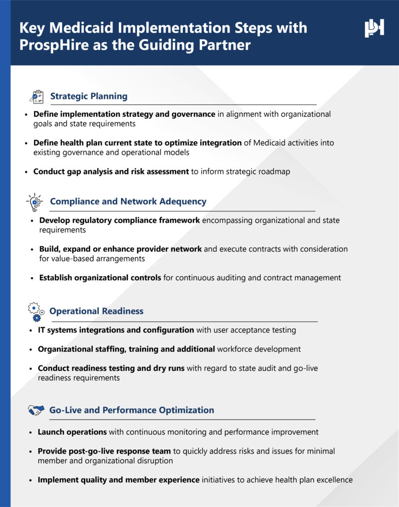 The intent to award Medicaid contracts presents both opportunities and challenges for health plans. Whether you are an incumbent plan seeking to optimize performance or a new entrant preparing for go-live, ProspHire specializes in providing strategic support to drive operational success.