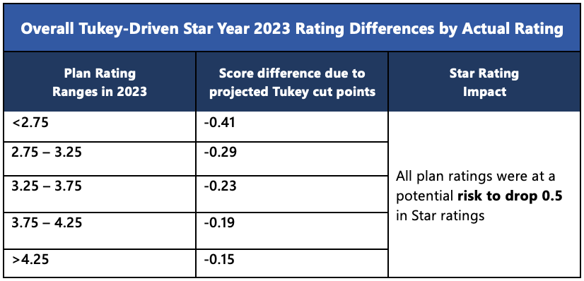 As your health plan continues to map out initiatives for SY2025, Tukey expectation setting and education are important to communicate early with leadership and shared services to understand possible impacts to your organizations Star rating in SY2024 and SY2025. With the implementation of Tukey Outlier Deletion and the reality of a potential drop in overall Star rating, plans must understand the implications of Tukey for their plan. It is important to communicate with leadership early and often to allow for future planning efforts to take place. Plans must continue to educate shared services on these impacts to drive new innovative solutions to continue to boost performance with this barrier.