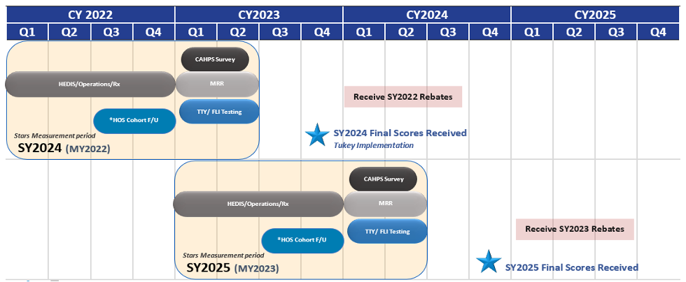 It's that time again for a new Star Year (SY). We are currently four full months into measurement year 2023 (SY2025), and in the final months of closing out the performance for SY2024. During this time, health plans must have a keen eye on two Star Years at once to maximize interventions and try to increase performance. With the pending changes coming into effect that will have a negative impact on plans, such as Tukey Outlier Deletion (SY2024), it is imperative that as we begin SY2025 we have the right plan in place from the beginning.