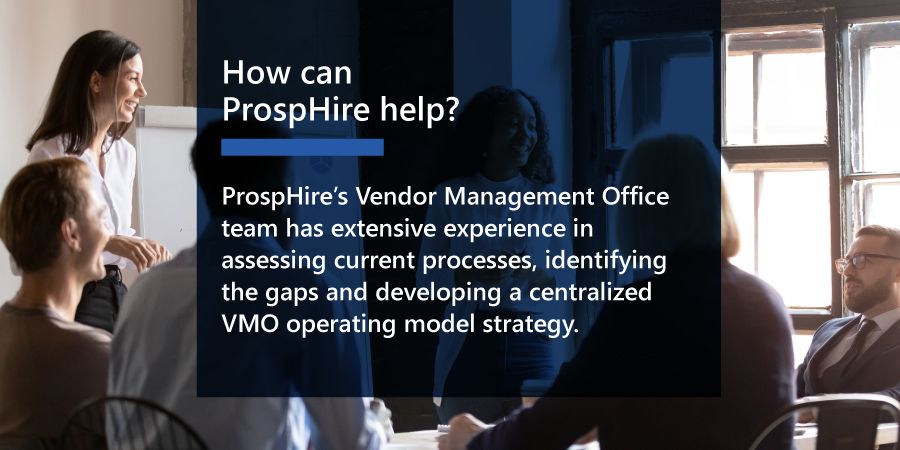 ProspHire's Vendor Management Office team has extensive experience in assessing current processes, identifying the gaps and developing a centralized VMO operating model strategy. That may include identifying cost saving measures and formalizing vendor management from selection to onboarding processes. We have also helped clients in developing custom analytical dashboards to monitor critical KPIs to keep our clients compliant with regulations and monitor overall vendor spend to ensure value is achieved.
